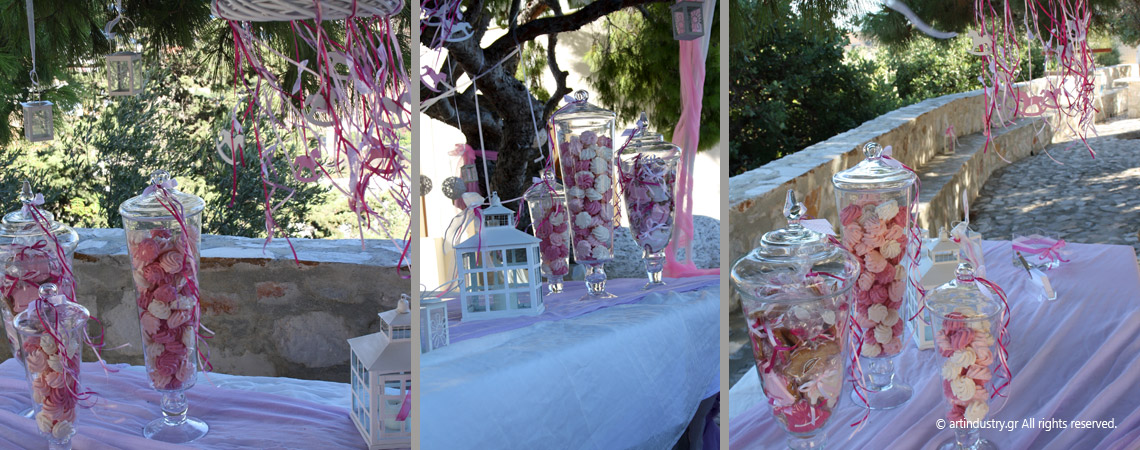 Carousel, wooden horses, swings, sweets and candies, all in shades of pink, harmonically tied with each other, are only a few of the things that the couple chose to decorate the baptism of their little daughter.