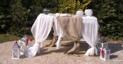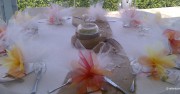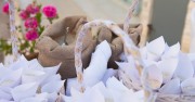 Even though researches say that a goldfish memory lasts only a few seconds, this particular wedding will always stay carved in the memory of the guests. The wish table, the place of the reception as well each and every round table were decorated with small beautiful goldfish in combination with the sackcloth (burlap) and the small rocks gave a completely unique style.
