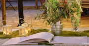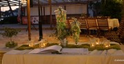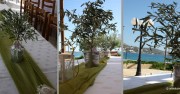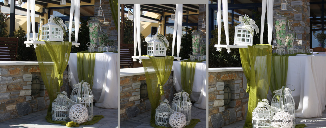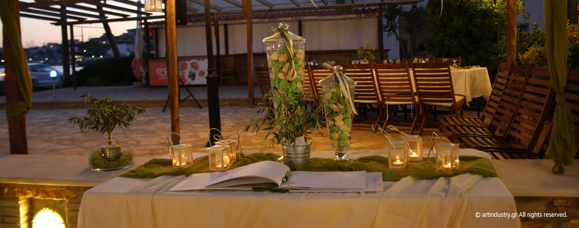 Κυρίαρχο στοιχείο του στολισμού μας οι μαγευτικές ελιές, σύμβολο γονιμότητας άμεσα συνδεμένο με την αναγέννηση, το φως και τον πολιτισμό μας. Σε αποχρώσεις του λαδί και του λευκού, γάζες, κορδέλλες και γλυκά δημιούργησαν ένα πραγματικά αρμονικό και όμορφο αποτέλεσμα.