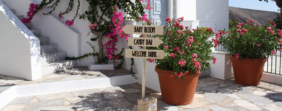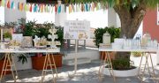 Μία πανδαισία χρωμάτων γεμάτη από γλυκά το candy bar, πολύχρωμα υφασμάτινα σημαιάκια, δέματα έτοιμα για αποστολή… καθώς επίσης και δροσερή λεμονάδα και μαστιχολέμονο ήταν μόνο μερικά από αυτά που αντίκρισαν οι καλεσμένοι.
